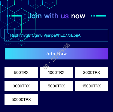 ➡️套餐随时可以原点升级,比如你激活的是5000trx要升级到15000trx,你登录后台选择5000trx 然后点join,确认付款两次就是15000trx级别,另外一种方法就是提现复投自动升级