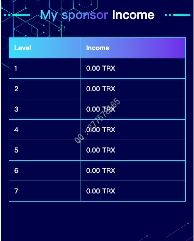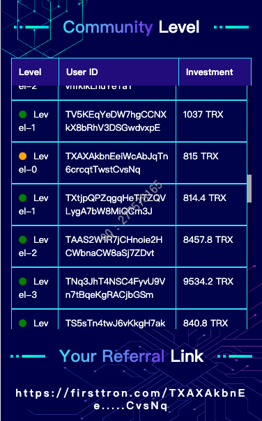 5000 TRX 可以获得上社区20层 下社区30层(5个直推➡️提现50%到账 50%复投)
