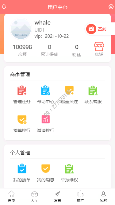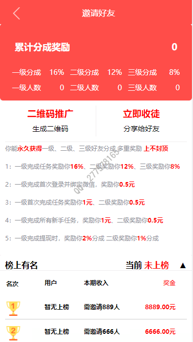 6.邀请好友奖励,邀请好友好友可以获得邀请奖励及任务分佣,三级分佣